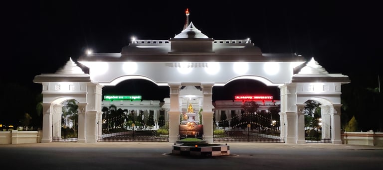 Alagappa University, located in Karaikudi, Tamil Nadu, is a renowned institution dedicated to fostering education, research, and innovative thinking. Established in 1985, the university offers a wide array of undergraduate and postgraduate programs across various disciplines, including arts, science, business, and education. The campus is equipped with modern facilities, including well-stocked libraries, state-of-the-art laboratories, and recreational spaces that enhance the learning experience.
